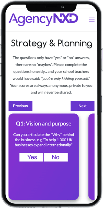Please be assured, your scores are never shared. and are private to you Complete anonymity - nobody will ever see you, or your business on the Agency NXD platform.